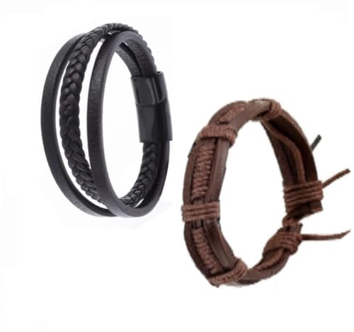 Specification: Mr. Gadget’s Solutions Men’s Quartz Watch with Analogue Display Date Window and Black Leather Strap & 2 Piece Leather Bracelets for Men Braided Rope Bracelet Cuff Set of 3